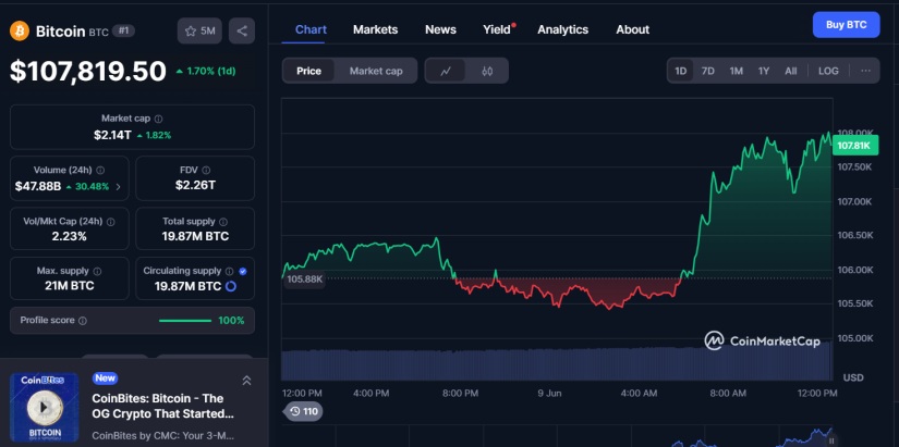 Le Bitcoin (BTC) vient de franchir un nouveau cap symbolique ce 10 juin 2025 en touchant brièvement les 108 046$, clôturant ainsi une semaine haussière de +3,3%. Cette performance remarquable s'inscrit dans un contexte où les marchés dérivés jouent un rôle prépondérant, avec une activité frénétique sur les futures perpétuels et une pression accrue sur les positions courtes.