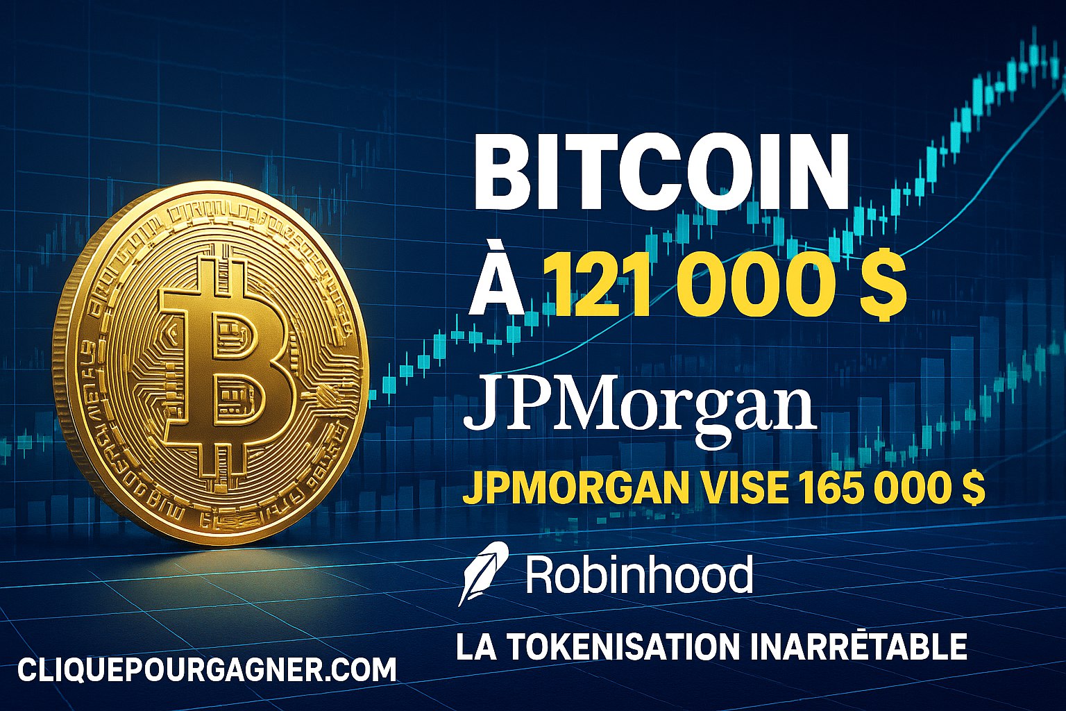 🚨Bitcoin franchit 121 000 $ : JPMorgan prédit 165 000 $ et Robinhood annonce la révolution de la tokenisation