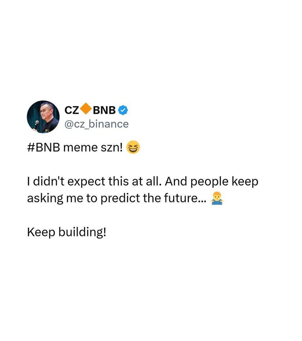 “BNB meme szn! 😆 I didn't expect this at all... Keep building! Over 1...